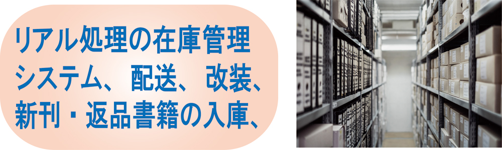 書籍・ムック・雑誌の出版物および、ビデオ・CDなどの関連商品を紛失、破損のないようにタイトルごとに仕分けし、パレット又は棚で管理しています。
